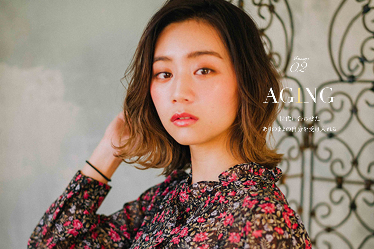 年齢を重ねるにつれて美しさを積み重ねる。エイジングと向き合い、自分自身の美容法と健康法を確立し、ありのままの自分を受け入れ、自分自身の演出方法を手に入れる。世代ステージに合わせた美容と健康を提案します。
