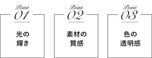 洗練されたカラーデザインのキーワードは“光色”。色を引き立たせる「ツヤ感」、しなやかさを感じさせる「質感」、髪質を輝かせる「透明感」で、傷みにくい。カラーデザインをより上質なものに印象づけます。