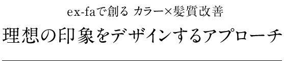 ex-faのカラーテクニックは、素材を引き立たせた自然な色味で大人女性を演出します。光沢感、繊細な質感、透明感を併せ持ったカラーで大人女性を演出します。