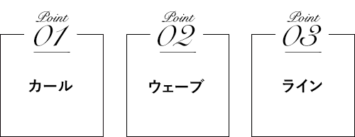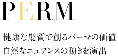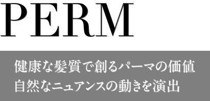 パーマデザインを楽しむために、髪を傷ませないエッセンスで繊細なやわらかさを表現し、動きをキレイに魅せるウェーブでスタイルをつくります。