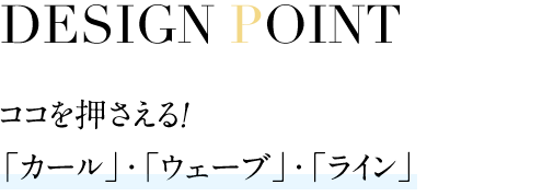 曲線で魅せる“大人の主張”。パーマスタイルをキレイに魅せるためには、自然な曲線のしなやかさと柔らかさを表現することが重要です。カール、ウェーブ、ラインで動きのあるヘアデザインをつくります。