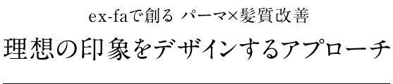 ex-faのパーマテクニックは、髪にハリ、コシを与え、しなやかさを創り、コンディションを整えた状態で自然な曲線の動きを創り、大人の女性を演出します。