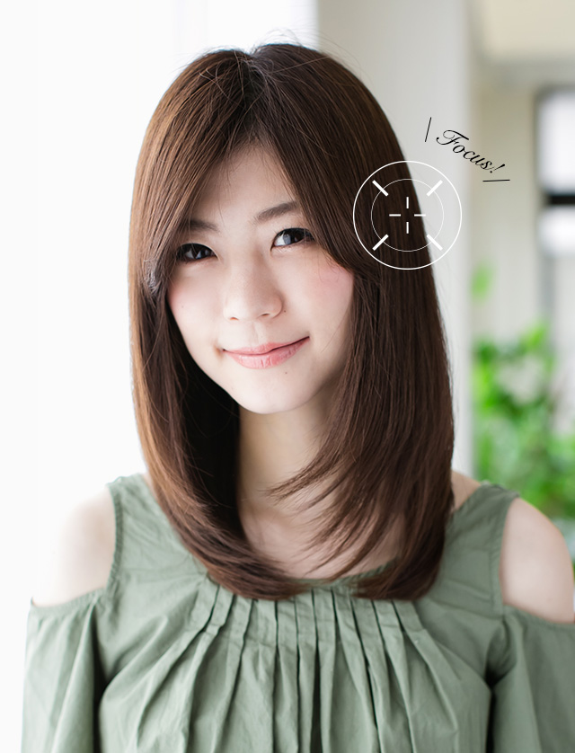 前髪、顔周り、顎周り。髪素材から反射する光のトーンが、陰影を作り、透け感、立体感を演出します。髪素材から発する光の質感を正面からアピールします。