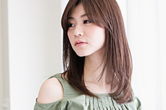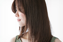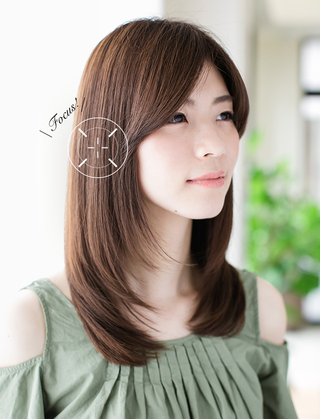 ふとした横顔がキレイ。女性の自然な美しさを物語る横顔の演出は、髪の素材感が引き立たせます。斜め45°で髪で主張するしなやかさややわらかさを表現します。